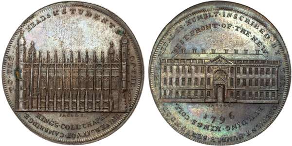 Cambs. Cambridge , David Hood Penny 1796, King’s College Chapel, rev . West elevation of King’s College new building, edge plain, 34mm/15.95gm (DH 7). Good Extremely, toned but with reflective fields and iridescent patination, uncommon.
