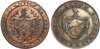 London, Chandos Street, William Allen (shoemaker and seller) Halfpenny 1795, Allen family arms, rev. Cordwainers’ arms, edge PAYABLE IN CHANDOS STREET COVENT GARDEN ++, 28mm/9.51gm. (DH 246). Another the same but edge diagonally milled, 28mm/9.16gm. (DH 246b). Both good Extremely Fine, first toned, second with fair amount of original lustre . [2]