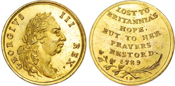 London , National Series, William Davis - Thanksgiving at St. Paul’s Halfpenny 1789, Laureate bust of George III right, rev. 7-line legend re. health restored, edge plain, 29mm/7.61gm. (DH 932). Another the same but gilded, 29.5mm/7.6gm. (DH 932). Both as struck, first with almost full mint lustre, second with beautiful reflective original gilding. Gilt piece rare. [2]