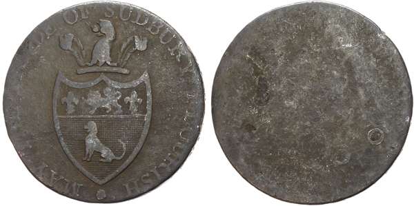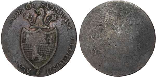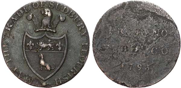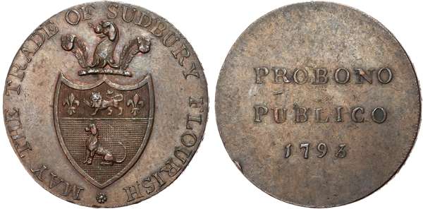 Suff. Sudbury , Thomas Goldsmith & Son (tailor and draper) Halfpenny 1793, Arms of Sudbury, rev. 3-line legend, edge PA …