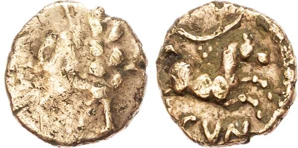 Trinovantes and Catuvellauni, Cunobelin (c. AD 10-43), AV Quarter Stater, 'Linear' type. 1.32g.
