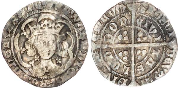 Crowned facing bust within a tressure of nine arches, quatrefoils by neck, fleurs on cusps, nothing on breast, rev. Long cross with triad of pellets in angles, 25mm/2.62gm. (Report 5; N 1570; S 2000). Fine. rev. better, lightly toned.