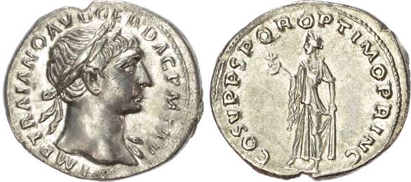 Trajan (AD 98-117) AR Denarius, Rome, AD 116-117, 3.43g.