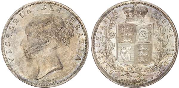 Victoria (1837-1901), Halfcrown, 1885, Type A5, young head left, rev. crowned shield within wreath, (ESC 713; Bull 2765; S.3888). Near extremely fine, attractively toned.