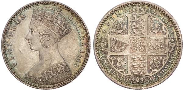 Victoria (1837-1901), 'Godless' Florin, 1849