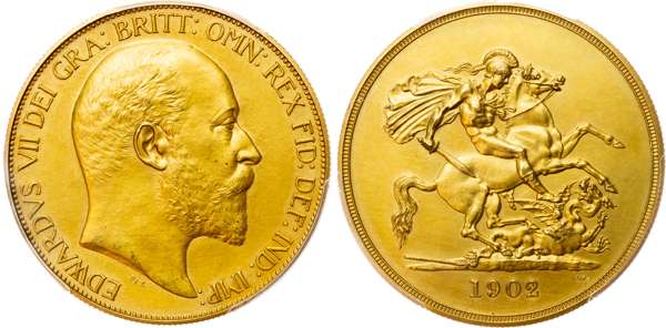Edward VII (1901-1910) Matt Proof Five Pounds, 1902.