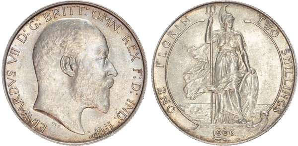 Edward VII (1901-1910), Florin, 1906, bare head right, rev. Britannia standing right, (Bull 3582; ESC 924; S.3981). Extremely fine or better.