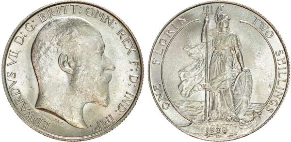 Edward VII (1901-1910), Florin, 1908, head right, rev. Britannia standing, (Bull 3584; ESC 9262; S.3981). Choice almost uncirculated with underlying mint brilliance.