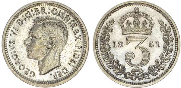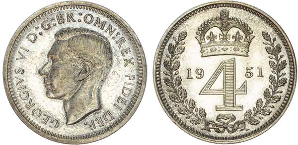 George VI (1936-1952) Maundy Set, 1951, fourpence, threepence, twopence, penny.