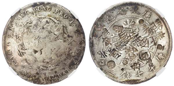China, Kwangtung, silver Dollar, ND (1890-1908), Kwangtung mint (LM 133). In NGC holder graded Fine Details – Chopmarked (6400900-103).
