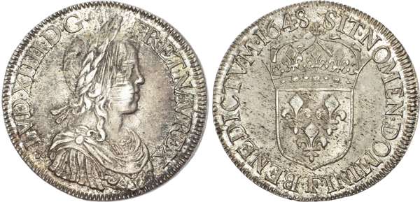 France, Louis XIV (1643-1715), silver Écu à la mèche longue, 1648 F