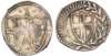 St. George's Cross arms within laurel and palm wreath, rev. Conjoined arms of St. George’s cross and Irish harp, denom. above. 0.52gm. (ESC 988; Bull 132; Spink 3217). Almost Extremely Fine, pleasantly toned but weak areas.