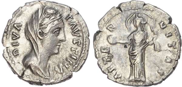 Diva Faustina Senior (d. AD 140/1) AR Denarius, Rome, 2.72g.