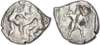 Two wrestlers grappling. Rev. EΣTFEΔIIYΣ, slinger right, in throwing stance, triskeles to right. (SNG BN 54). Fine for issue. Countermarks to obverse and reverse.