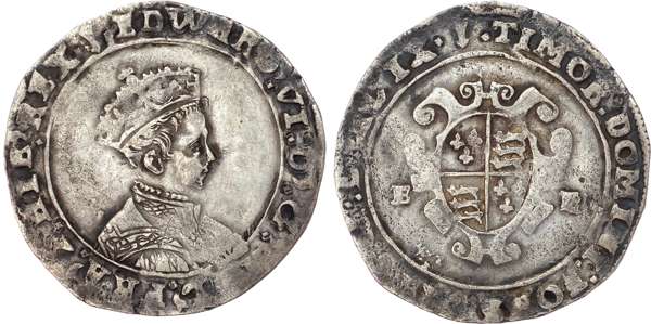 Crowned bust 5 right within linear circle, legend surrounding, EDWARD VI DG AGL FRA Z HIB REX. Rev, oval quartered shield of arms, E to left, R to right, contained within linear circle, legend surrounding TIMOR DOMINI FONS VITA MDXLIX, 4.84gm (S. 2466; N. 1917/1). Bold good very fine, parts of the portrait nearer to extremely fine toned.