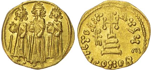 Heraclius, with Heraclius Constantine and Heraclonas (AD 610-641) AV Solidus, Constantinople, AD 639-641, 4.46g.