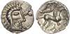 Stylised and moustached head right, oval eye, dashed hair and crescents behind, grain ear behind. Rev. Stylised horse right, wheel above, lozenge below. (ABC 1567; VA 792 ‘Boudica’). Extremely Fine. Pleasing cabinet tone.