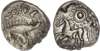 Corieltauvi, Uninscribed (c. 55-45 BC) AR Unit, ‘Sun and Moon Proto Boar’ type, 0.94g.