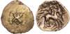 , ‘Addedomaros X Box’ type, 1.37g. Back-to-back crescent symbol with pyramids. Rev. [ADDEDOMAROS], horse right, cross-in-square below. (ABC 2520; VA 1638-1). Very Fine. Very Rare.