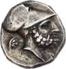 Helmeted head of Leukippos facing right, lion’s head behind. Rev. META, ear of grain, [club to left]. (HN Italy 1575; SNG ANS 434). Very Fine.