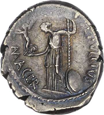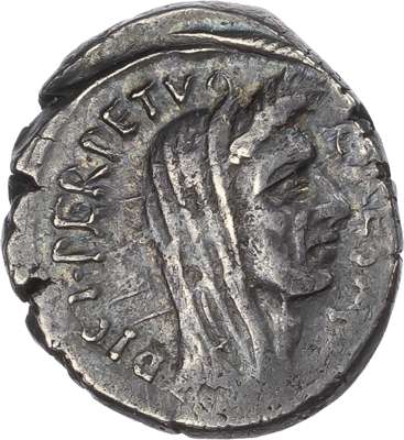 CAESAR DICT PERPETVO, veiled head of Caesar facing right. Rev. P SEPVLLIVS MACER, Venus standing left, holding spear and Victory, shield at feet. (Crawford 408/13; Sydenham 1074; CRI 107d). Good Very Fine. Attractively toned with an excellent portrait.