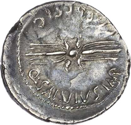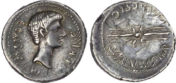 Octavian (40 BC) AR Denarius, military mint moving with Octavian, Q. Salvius, magistrate, 3.74g.