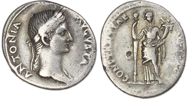Antonia (morhter of Claudius) AR Denarius, Lugdunum, AD 41-42, 3.68g.