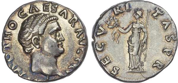 IMP OTHO CAESAR AVG TR P, bare head of Otho right. Rev. SECV-RI-TAS P R, Securitas standing left, holding wreath and sceptre. (RIC 8; BMC 17; RSC 17). Nearly Extremely Fine. Excellent portrait.