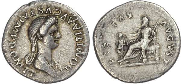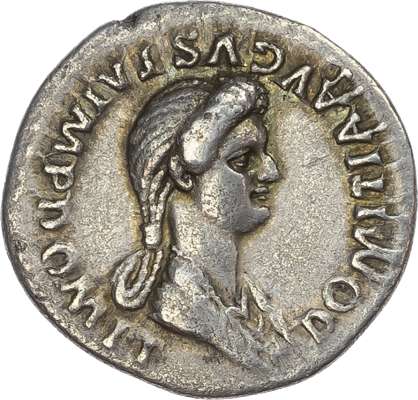 Domitia (Wife of Domitian) AR Denarius, Rome, AD 82-96, 3.28g.