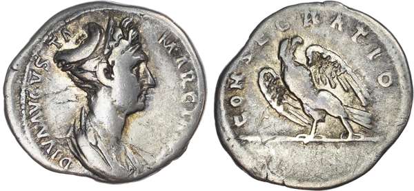 DIVA AVGVSTA MARCIANA, draped bust of Diva Marciana right. Rev. CONSECRATIO, eagle standing left, head right, sceptre in talons. (RIC 743; BMC 650; RSC 4). Very Fine.