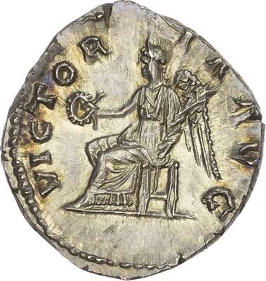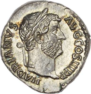 HADRIANVS AVG COS III P P, laureate head of Hadrian right. Rev. VICTOR-IA AVG, Victory seated left, holding wreath and palm. (RIC 2242; BMC 773). Good Extremely Fine. Sharp and lustrous.