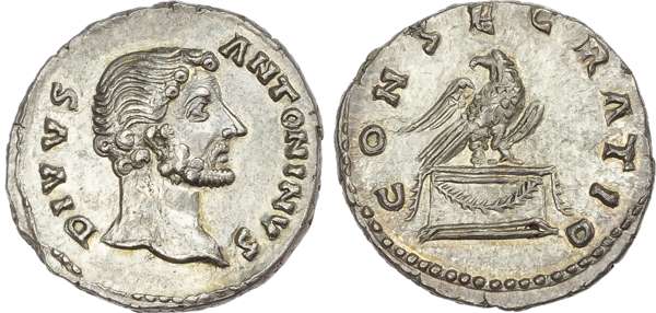 Divus Antoninus Pius (AD 138-161) AR Denarius, Rome, AD 161, 2.60g.