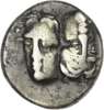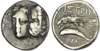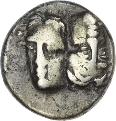 Facing male heads, the right inverted. Rev. Eagle left, clutching a dolphin in its talons, A below. (HGC 3, 1801; AMNG I, 435). Very Fine.