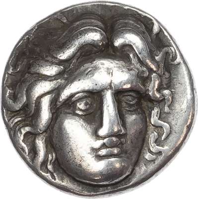 Head of Helios facing slightly to the right. Rev. POΔION, rose with two buds, E below. (Ashton 157; HGC 6, 1435). Very Fine.