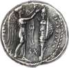 Head of Alexander the Great right, wearing helmet decorated with panther skin and ornamented with bull’s horns and ear. Rev. Nike standing right, erecting trophy of arms, AX between. (SC 174.5). Good Very Fine. Pleasing cabinet tone.