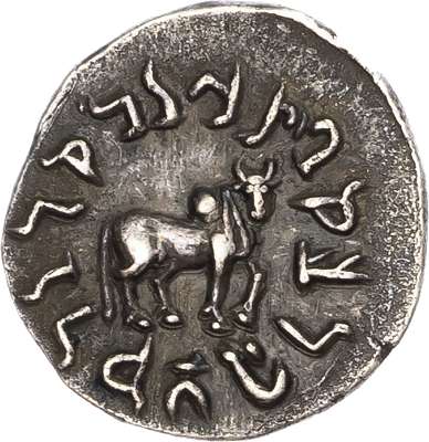 Elephant standing right. Rev. Zebu standing right. (Bopearachchi 2A; SNG ANS 299). Good Very Fine.