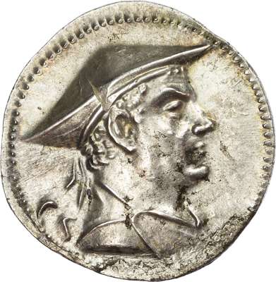 Diademed and draped bust right, wearing kausia. Rev. Poseidon standing facing, holding trident and palm branch. (SNG ANS 275). About Extremely Fine. Some corrosion.