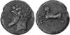 Laureate and bearded male head left. Rev. Horse leaping left, pellet below. (SNG Copenhagen 505; Mazard 50). Good Very Fine for issue.