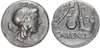 G•P•R, diademed draped bust of the Genius of the Roman People facing right, sceptre behind. Rev. EX• – S•C / CN•LEN•Q, wreathed sceptre, globe and rudder. (Crawford 393/1a; Sydenham 752). Very Fine.