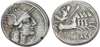 Helmeted head of Roma facing right, laurel branch behind, X (mark of value) to right. Rev. Jupiter, holding sceptre, thunderbolt and reins, driving quadriga right, M•CARBO below, ROMA in exergue. (Crawford 276/1; Sydenham 423). Fine.