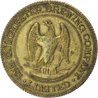 Cambs . Wisbech, Old Bell , 6d. 26mm. H R Jeffree (Vaughton), aEF; Bowling Green Inn , 1½d. 28mm. P Handley (Taylor), VF; Essex. Colchester , Colchester Brewing Company Ltd. 2d. 25mm. ( Eagle . [3]