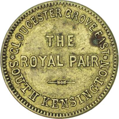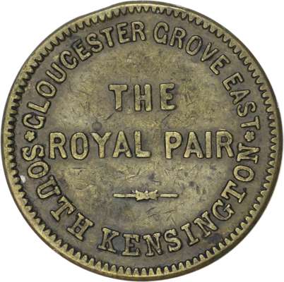 Lon. Chelsea, Smith St., Phoenix , 1 ½d., 2d., 3d., 28.5mm. (Taylor), EF, toned, (3); Chelsea, 14 Symons St., Wiltshire Brewery , no denom., 23mm. F Bullock South Kensington, Glos. Grove The Royal Pair , 1½d., 3d. 28mm. (Taylor) , aVF (2). [6]