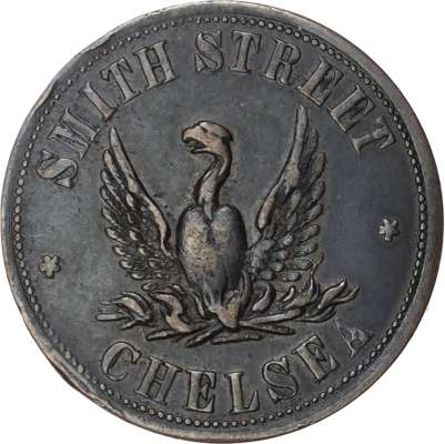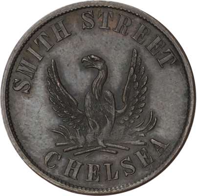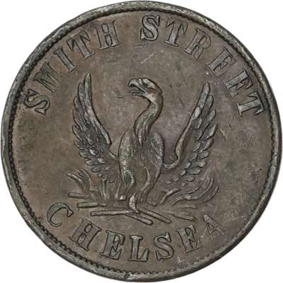 Lot of 6 coins - Lon. Chelsea, Smith St., Phoenix , 1 ½d., 2d., 3d., 28.5mm. (Taylor), EF, toned, (3); Chelsea, 14 Symons...