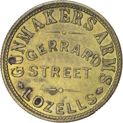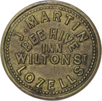 West Mids. Birmingham, City centre, Navigation St. Hope & Anchor, 2½d. 25mm. R Edmonds. VF; Lozells, William St. Royal Victoria Cross , 2½d., E Cooper, Lozells, Gerrard St. Gunmakers Arms , 2½d., 26mm. (Daniell). aEF; New Inns , 3d. 26mm. Mitchells & Butler Ltd. gVF toned ; Lozells, Wilton St. Bee Hive Inn , 2½d., 25mm. J Martin. gVF. [5]
