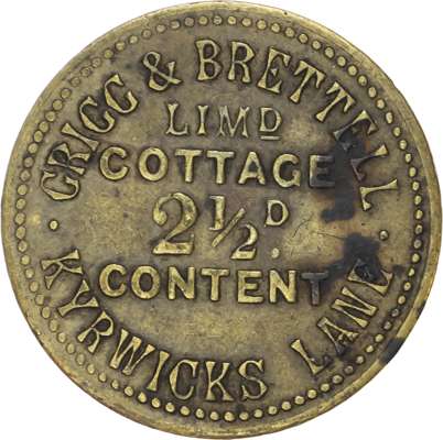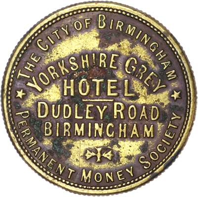 West Mids. Birmingham Sparkbrook, Ladypool Rd. Clifton Inn 3d. 24mm. W Owen, VF; Long St. Warwick Arms 1½d. 27mm. W Charles, (Pope) ; Sparkbrook, Kyrwicks La. Cottage of Content 2½d. 26mm. Grigg & Brettell ; Summerfield, Dudley Rd. Yorkshire Grey Hotel 2½d. 25.5mm. Permanent Money Soc., VF. [4]