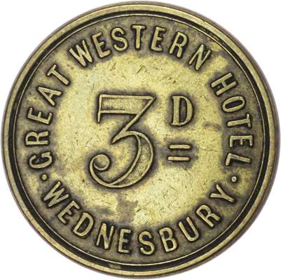 Lot of 4 coins - West Mids . Sandwell Wednesbury, Great Western Hotel 3d. 26.5mm. William Sheldon. gVF; Green...