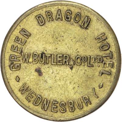 West Mids . Sandwell Wednesbury, Great Western Hotel 3d. 26.5mm. William Sheldon. gVF; Green Dragon Hotel 3d. 26mm. W. Butler Woden Inn 2½d., 23.5mm. Mitchells & Butler EF; Elephant & Castle 2d. 27mm. H Harrison, VF. [4]