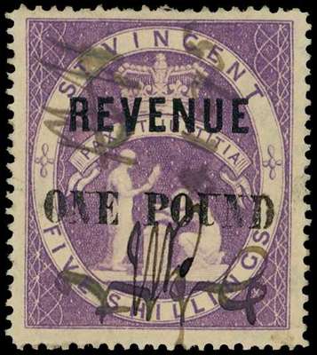 1887-95 ONE POUND on 5s lilac (22mm surcharge), fine used, cancelled with two sets of initials and what appears to be a January 1893 date. Fine and rare. McClellan R41. | SG 41