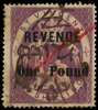 1893-95 'One Pound' on 5s greyish purple, fine used, cancelled with red pen stroke, slightly smudged initials and 13/2/96 date. A rarity of which it is believed just 545 were printed with a low survival rate, with this shade making up just 225 of that total according to Pierce et al. McClellan R46 | SG 46