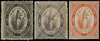 Summary Jurisdiction: 1866 group of three archival items of unknown status, the first 1871-75 24c perf 10 opt 'CANCELLED' in violet 25x5mm, (a type mentioned but not illustrated by Samuel), 48c perf 12½ cancelled by violet cross and 72c orange, no wmk imperf mint single. An unusual trio ripe for further research.